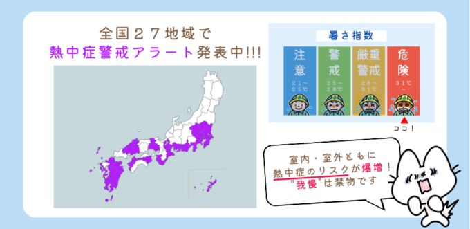 暑さ指数も31と室内・室外ともに熱中症のリスクが激増しています!