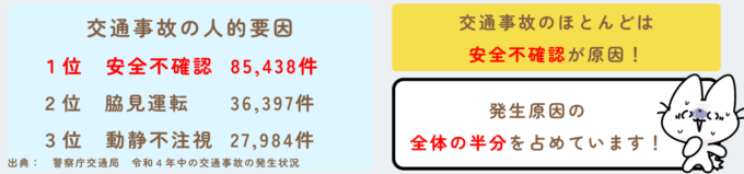 交通事故のほとんどが安全不確認が原因で起きています。