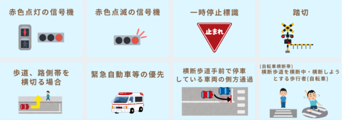 一時停止しなければいけない場所は一時停止の道路標識がある場所だけではありません!