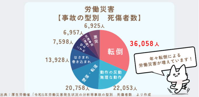 皆さんは労働災害で一番件数の多い事故はなんだとおもいますか?
