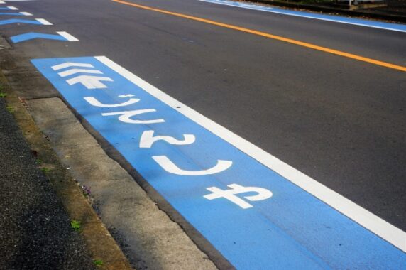 車道の端に青色にペイントされた路面標識を見かけるようになりました。