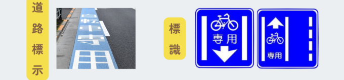 普通自転車専用通行帯には、道路標示と標識が設けられています。