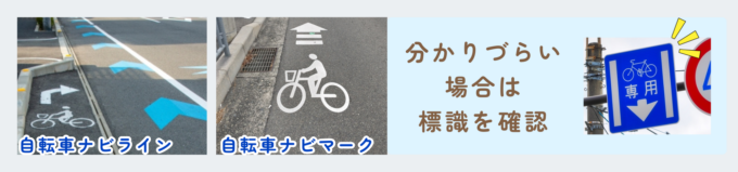 普通自転車専用通行帯と自動車ナビマークナビラインの違い