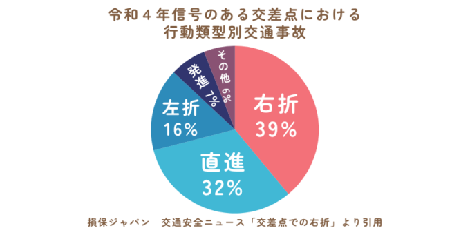 実は、交差点における交通事故が一番多いのが「右折による交通事故」です。