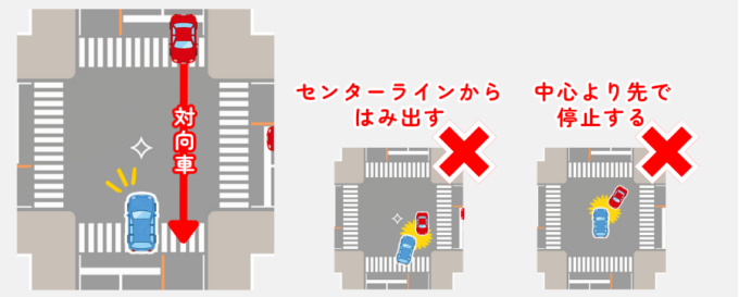 ✖センターラインからはみ出して停止 ✖中心より先で停止