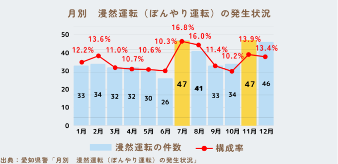 夏型事故と呼ばれる「漫然運転」ですが、実は、この時期にも多発します
